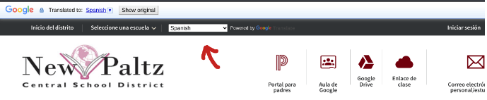 También, si tiene dudas comprendiendo el sitio, se puede traducir el sitio con Google. Puedes hacer esto al seleccionar la opción que puedes encontrar arriba y seleccionar la escuela, y el idioma que quieras.